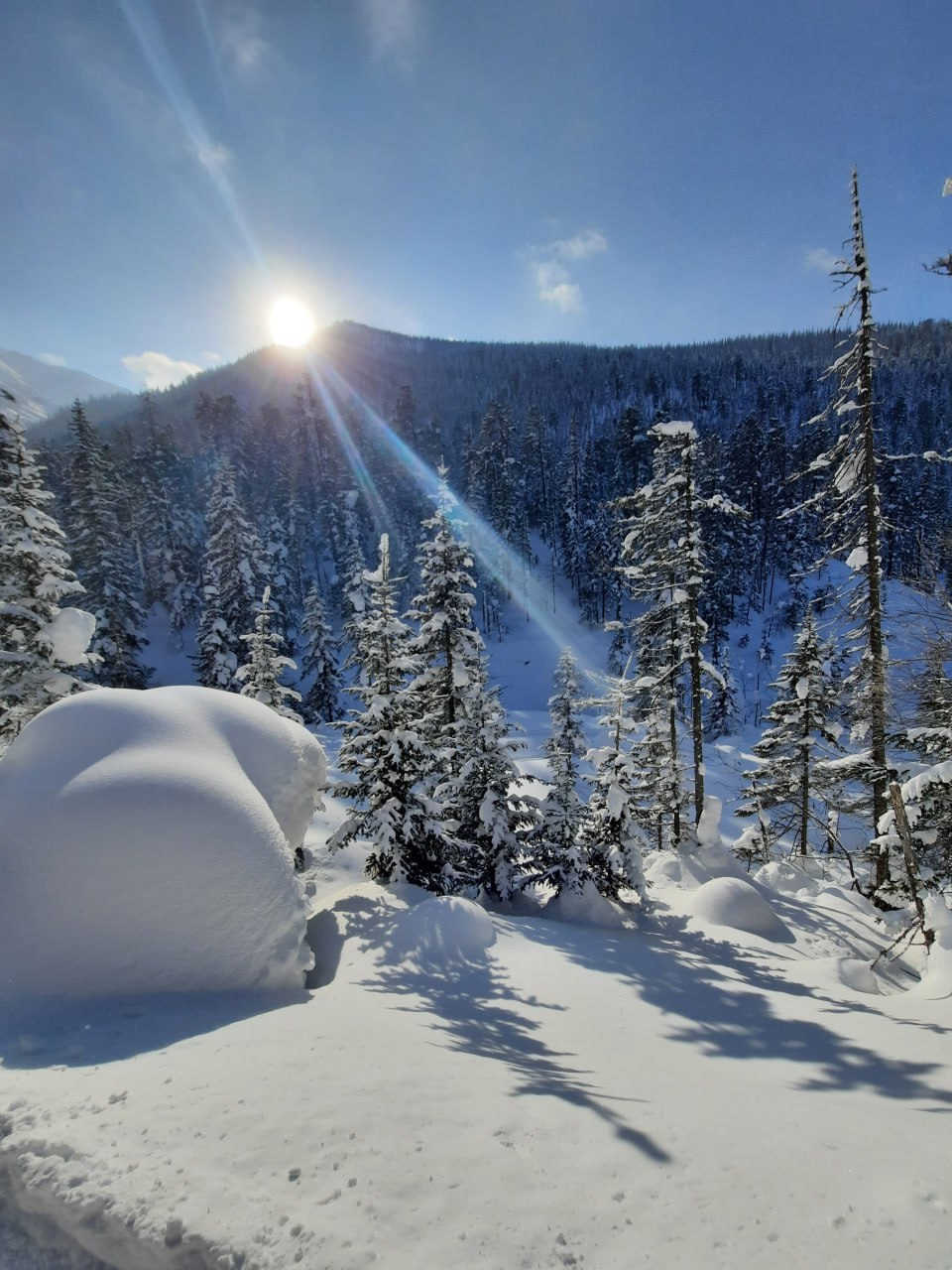 — Подъём (около 1 часа) к зимней поляне — наслаждаемся заснеженным лесом, фотографируемся у «снежных зефирок».